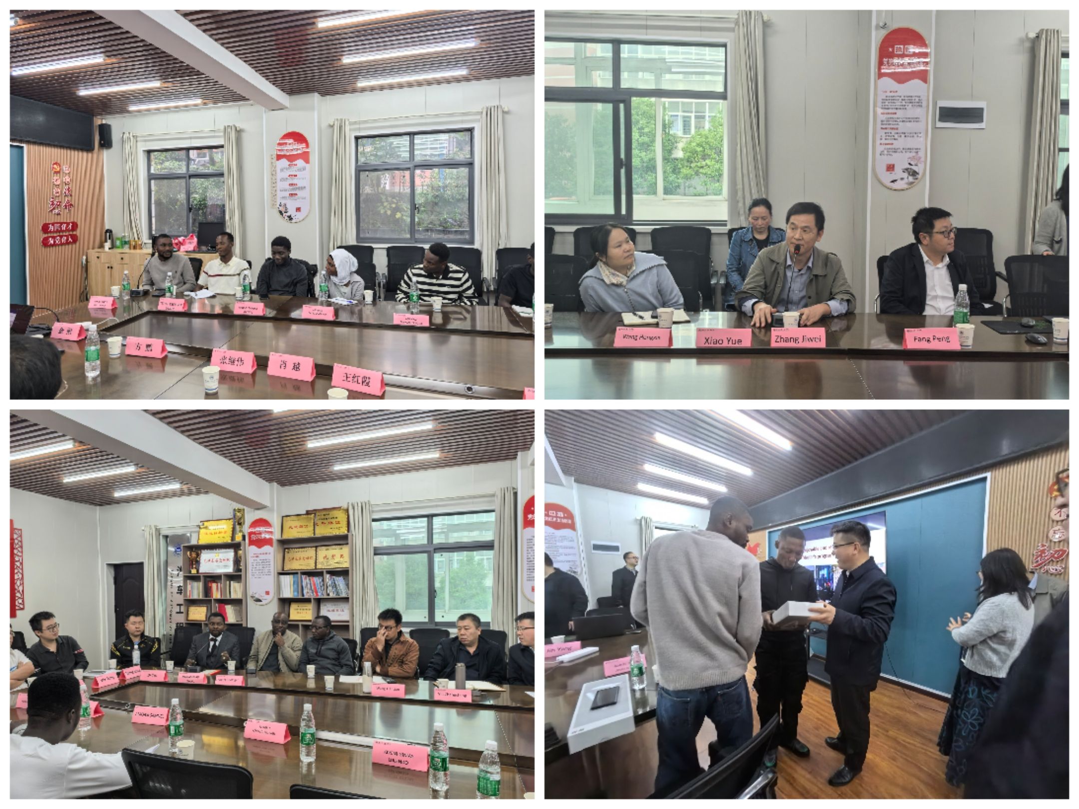 在交流环节中,2025级10位外籍研究生依次发言,分享了入学感受与学习计划。多位导师随后发言,就科研方向、课题选择等给予指导,鼓励新生积极融入学术团队。学院领导再次致辞,强调将全力支持外籍员工的学习和生活,并为他们赠送了台灯作为纪念礼物。