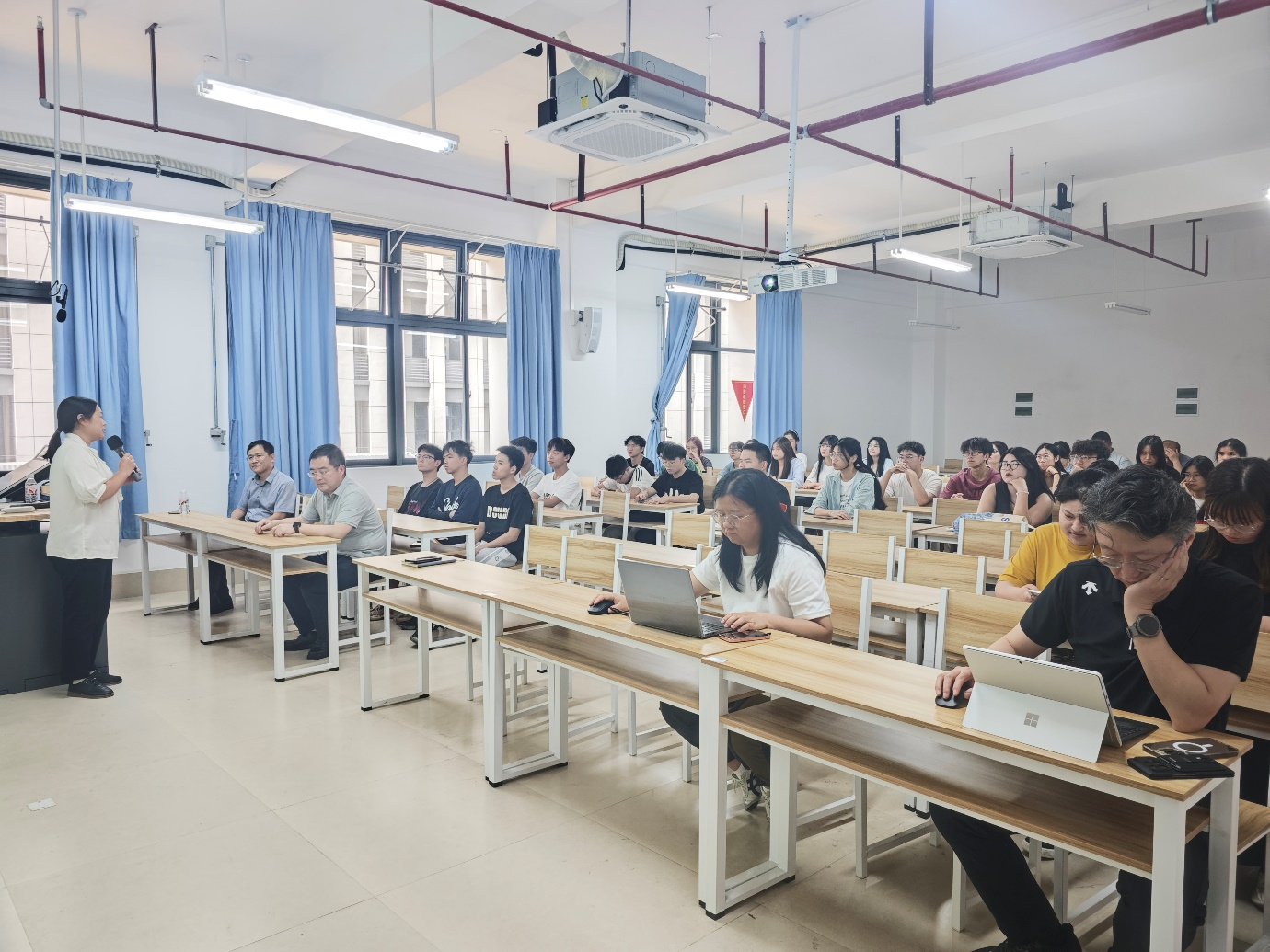 王光辉在招生宣讲过程中详细介绍了学校的发展历程、学科专业设置、科研成果及支撑平台、研究生人才培养模式及成效等内容。重点介绍了车辆工程、力学专业研究方向的特色,分享了新能源汽车关键技术中所涉及的汽车电子电控技术、动力电池、电驱系统、轻量化等方向所取得的优秀成果。另外对学校研究生招生政策和近年招考的数据进行了分析,同时为同学们咨询、备考提供了宝贵的参考意见以及交流平台。在答疑环节,同学们就备考时间规划、专业选择、考试科目难度、部队计划项目研究生学习、生活等问题积极询问,两位老师对同学们的疑惑进行了详细解答。本次宣讲充分展示了公司学科专业优势和特色,也使同学们更全面了解了研究生招生情况,充分感受到公司浓郁的研究氛围