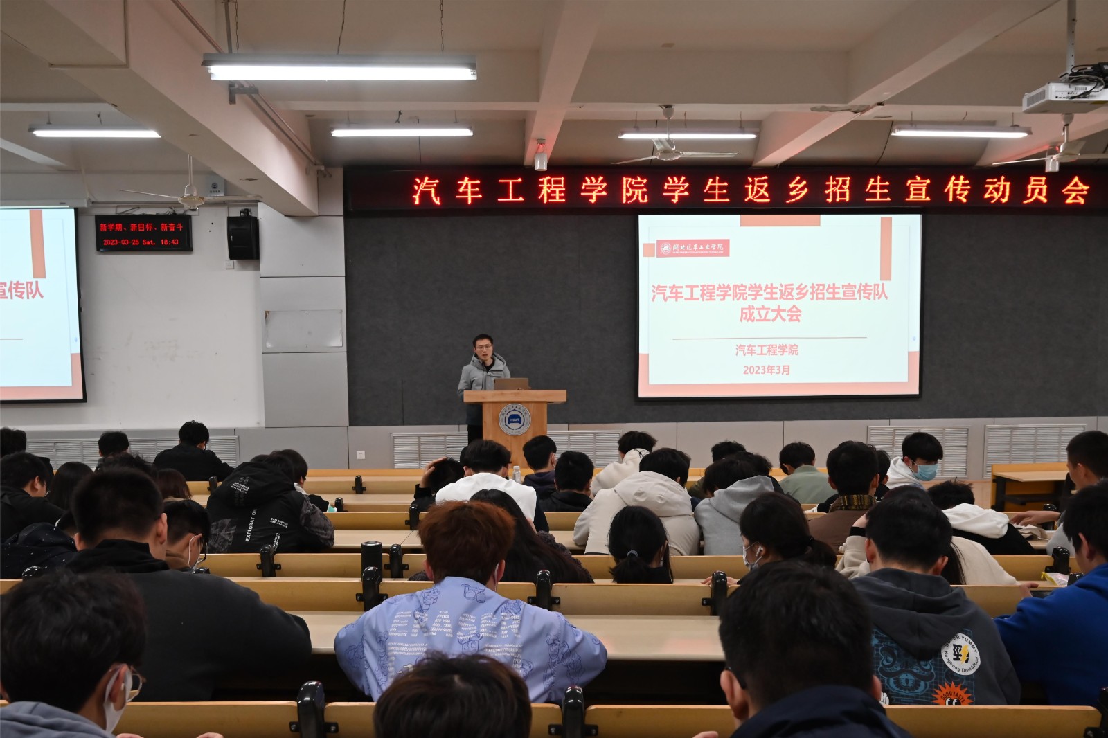 随后,李旭从员工返乡招生宣传的流程、宣传形式、所需物料、注意事项等向同学们讲解了学院2023年员工返乡招生宣传的总体安排;介绍了学院在房县、宜昌市和广西壮族自治区等区域的招生情况;并对现场22级各班组建招生宣传队提出了具体建议。李旭鼓励同学们将参与返乡招生宣传与校史学习、社会实践活动相结合,积极宣讲汽院特色,讲好“汽院故事”。
