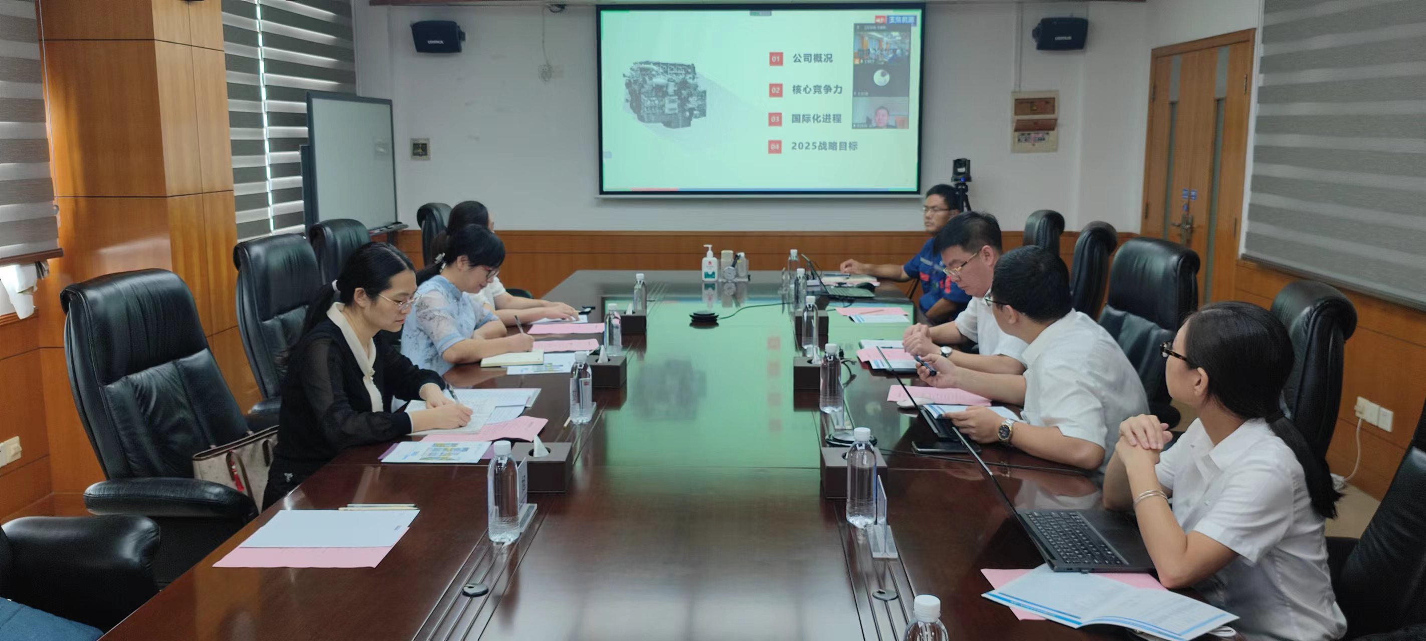 参观之后,冯樱一行与玉柴机器股份有限公司总裁吴其伟、副总裁王利民等公司领导进行了座谈。会上,玉柴公司人力资源部部长蔡宇平从员工培养路径、公司核心竞争力、国际化进程、企业文化等多方面讲解了公司的基本情况,并介绍了公司的校园招聘计划。随后,周红妮向大家介绍了学院、学校的发展现状,并就员工赴玉柴公司实习实训的合作事项进行了交流。杜昕俊介绍了毕业生就业情况并邀请玉柴公司赴学校开展专场校园招聘活动。