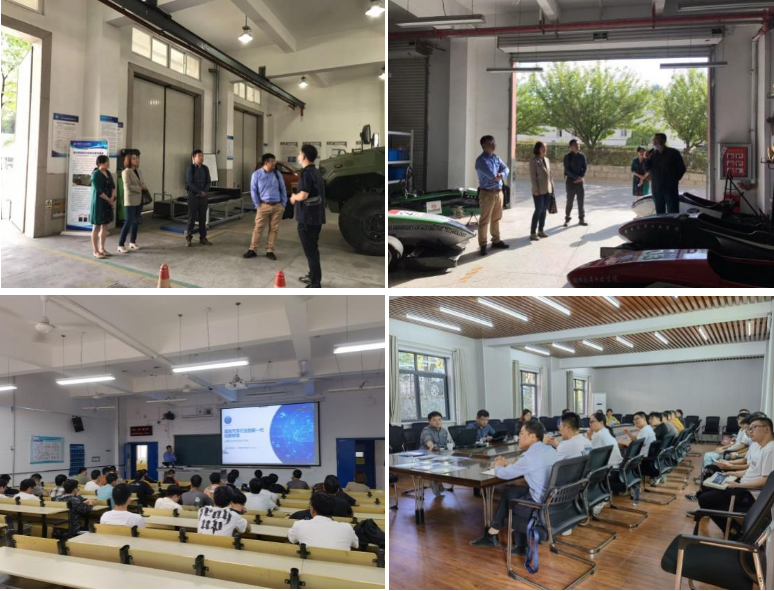 四位专家在张胜兰教授的陪同下先后参观了汽车动力传动与电子控制湖北省重点实验室和东风HUAT车队。刘成武副经理和金家琛老师分别对重点实验室的设施和车队的情况进行了介绍。参观过程中,张胜兰教授回顾了学院前期在CAD/CAE/CAM方向所进行的教学和研究工作,研究成果为东风汽车公司及周边的汽车零部件企业解决了大量的技术难题。专家们一致认同数字化将驱动汽车产品更新迭代并将产生深远的影响,对于数字仿真平台的开发和应用颇为重要。