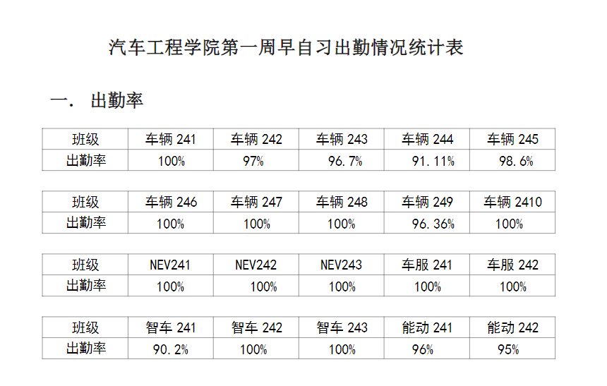 【督学正风】BB贝博艾弗森官网2024-2025学年第二学期第一周早自习出勤情况
