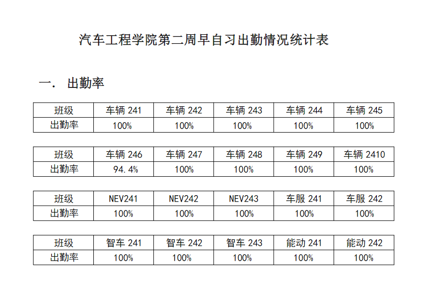 【督学正风】BB贝博艾弗森官网2024-2025学年第二学期第二周早自习出勤情况