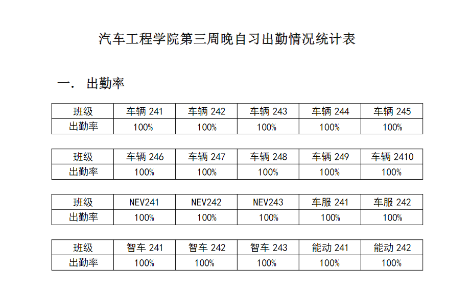 【督学正风】BB贝博艾弗森官网2024-2025学年第二学期第三周晚自习出勤情况