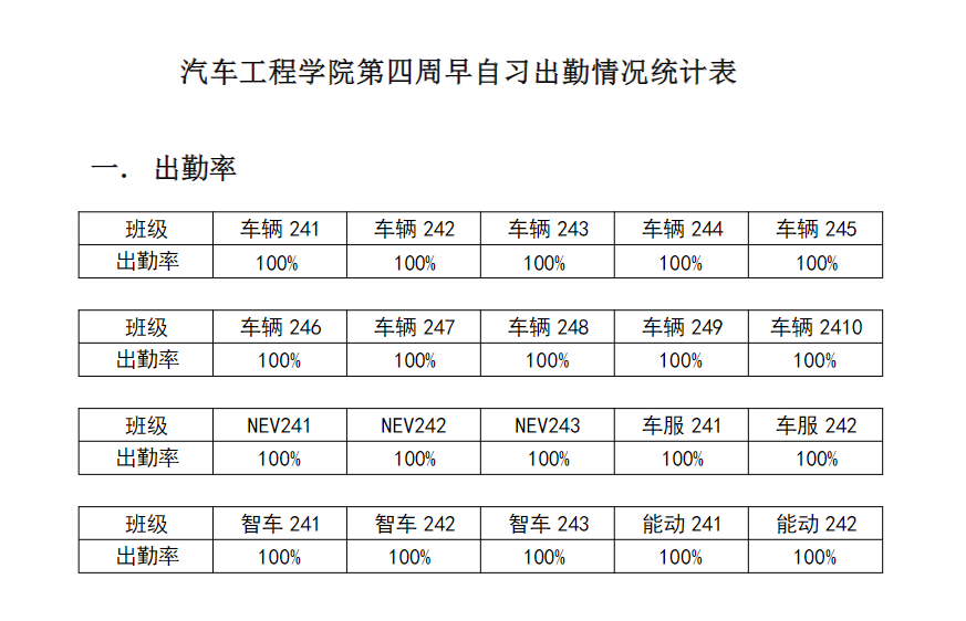 【督学正风】BB贝博艾弗森官网2024-2025学年第二学期第四周早自习出勤情况