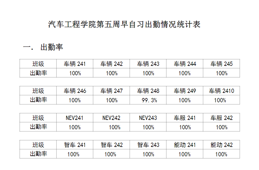 【督学正风】BB贝博艾弗森官网2024-2025学年第二学期第五周早自习出勤情况