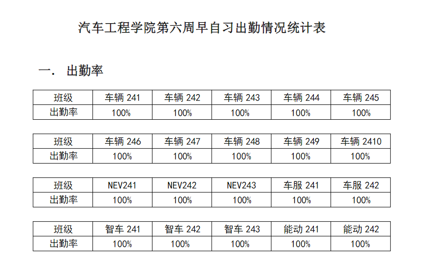 【督学正风】BB贝博艾弗森官网2024-2025学年第二学期第六周早自习出勤情况