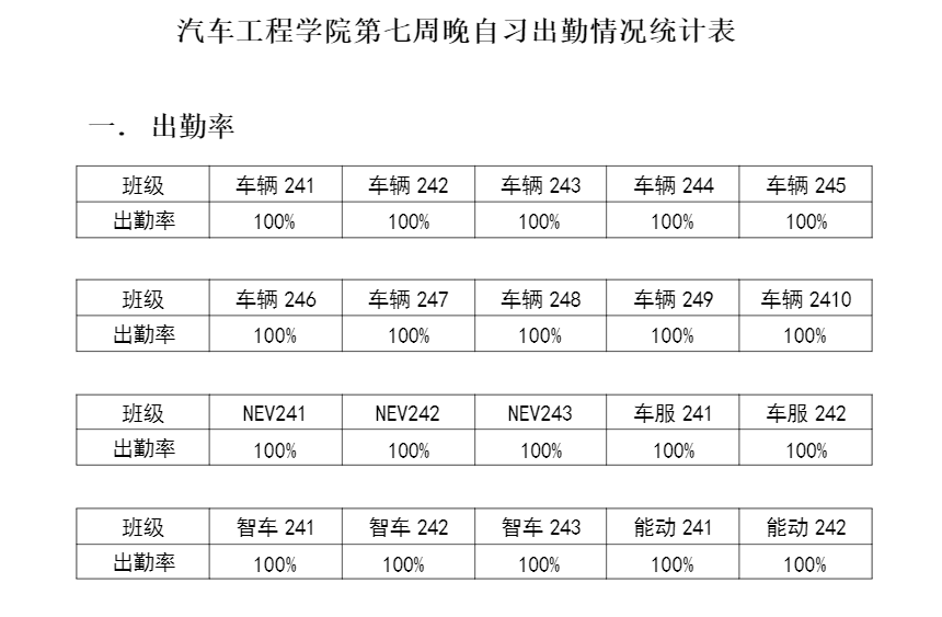 【督学正风】BB贝博艾弗森官网2024-2025学年第二学期第七周晚自习出勤情况