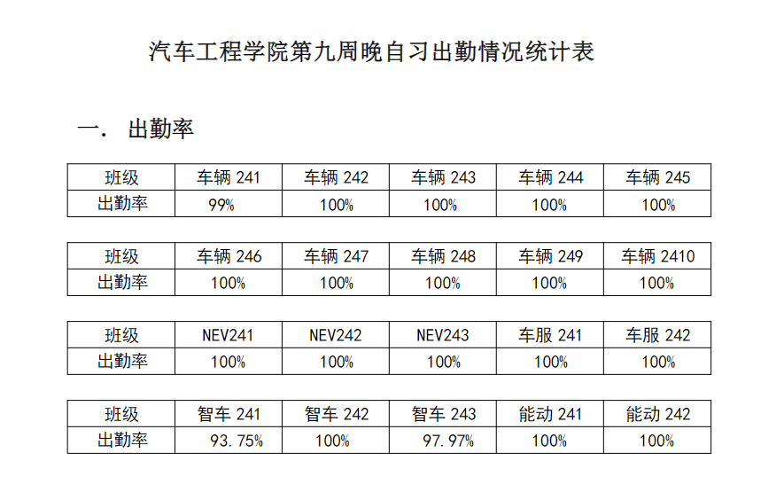 【督学正风】BB贝博艾弗森官网2024-2025学年第二学期第九周晚自习出勤情况