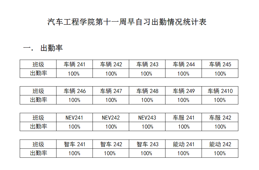 【督学正风】BB贝博艾弗森官网2024-2025学年第二学期第十一周早自习出勤情况