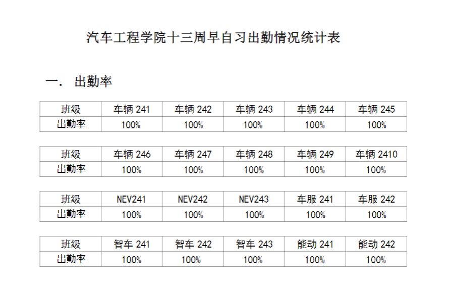 【督学正风】BB贝博艾弗森官网2024-2025学年第二学期第十三周早自习出勤情况