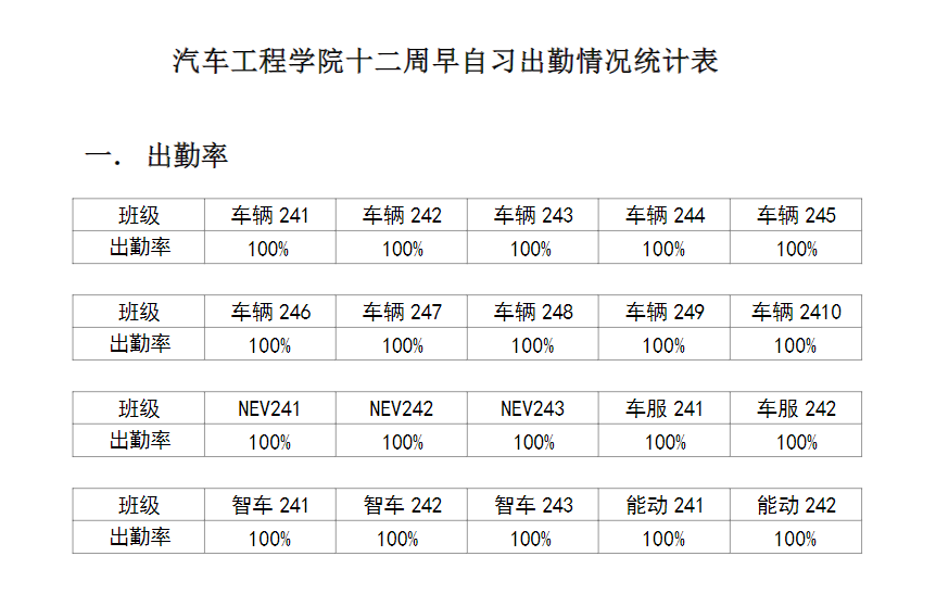 【督学正风】BB贝博艾弗森官网2024-2025学年第二学期第十二周早自习出勤情况
